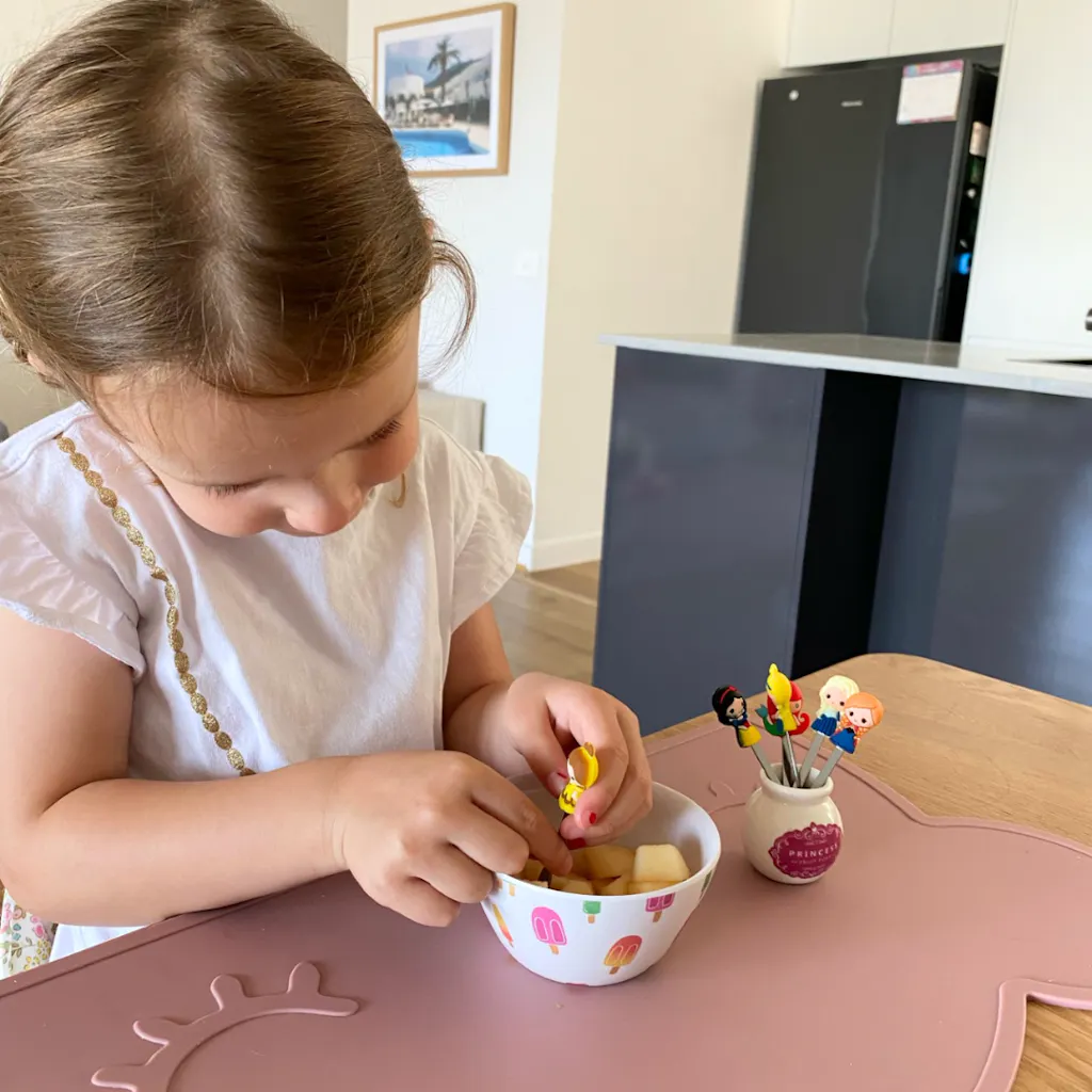 • 100% food grade Stainless Steel Fork & Silicone Character Top