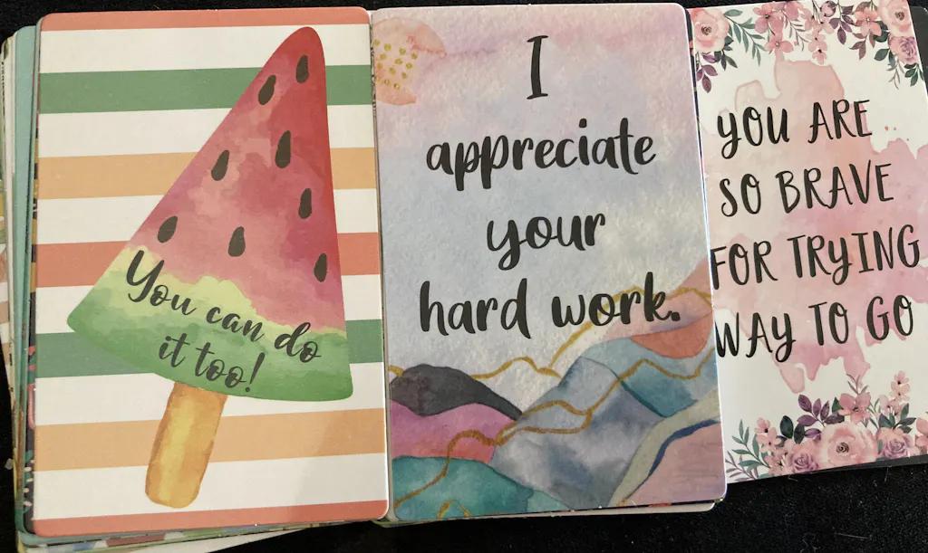 • Parents can write personal notes on the uncoated card backs for extra positivity, affirmations and encouragement.